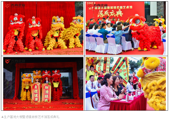 期冀方向擐甲执兵,整装待发再启新程。此次生产基地大楼暨滤镜岩板艺术馆的成功落成,展现了公司正以更高品质、更高标准蓄势前进,为提升综合竞争力再添新翼。