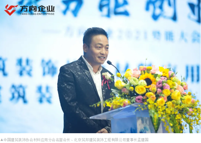 中国建筑装饰协会材料应用分会名誉会长、北京筑邦建筑装饰工程有限公司董事长孟建国在致辞中肯定了方向企业的产品与服务,并表示人有方向,企业也要有方向,方向企业开云手机登录界面好、文化好、产品好,祝愿方向企业的未来发展越来越好,成为陶瓷行业的方向与标杆。