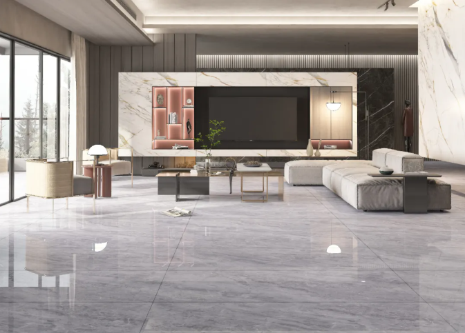搭配暖灰色理石大板铺贴地面