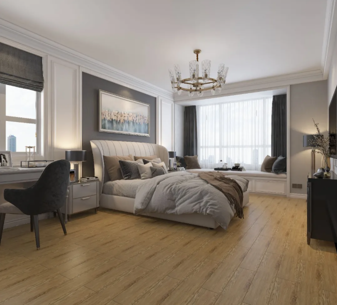 为卧室铺上原木肌理的瓷砖