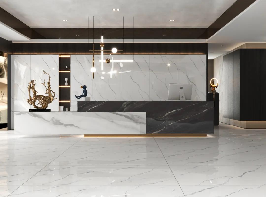 无限连纹设计的巧思在于,通过对大板面积和线条的延伸,使纹理和视觉得到无限拓展,彰显空间大气磅礴气宇轩昂之势,让自然之美的展现,不再受到单片瓷砖规格的局限。