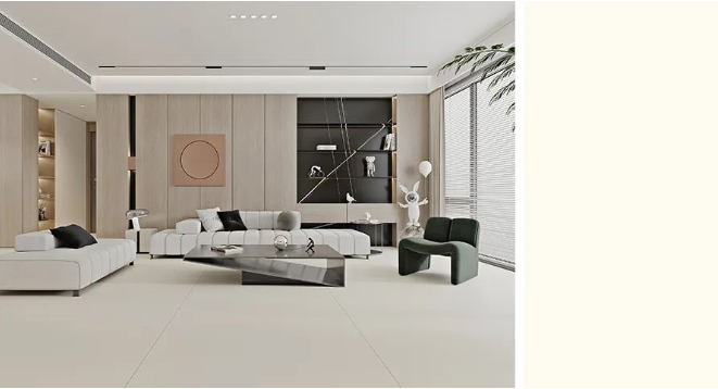 以暖意四溢的浅黄铺贴地面,于简约大方中透露着细腻柔美的优雅质感,搭配奶灰、橙黄等色彩元素,让视觉更饱满,带来简而不减的艺术美感。