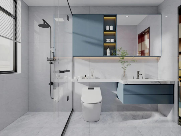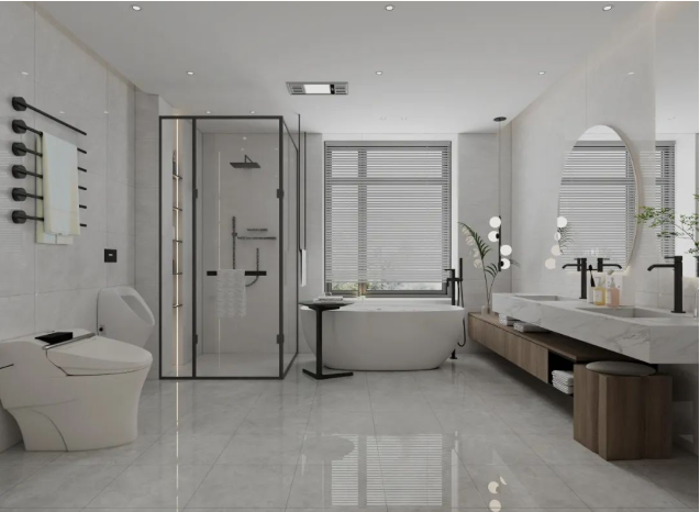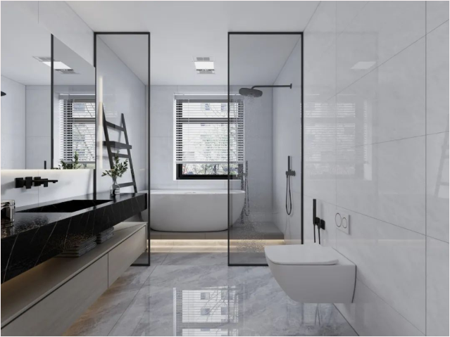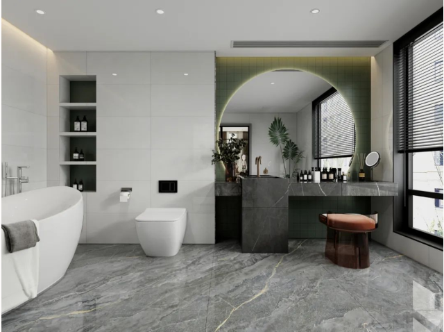 倘若浴室设计没有思路,不妨参考400x800mm通体瓷抛石中板设计方案,让你的浴室颜值与功能兼具!