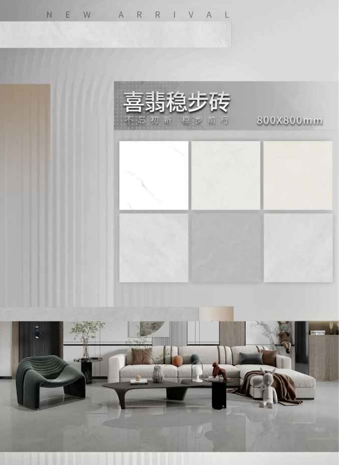 2023春季新品喜翡稳步砖,采用核心瓷抛工艺技术,精准平衡防滑与耐磨性能,实现高耐磨+高防滑效果,安全性更高。