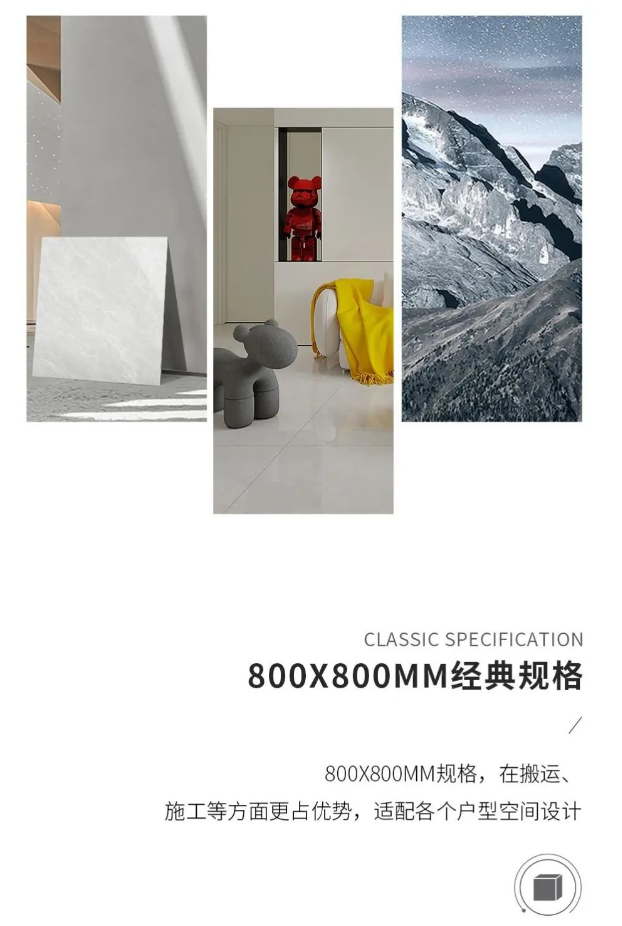 800x800mm经典规格,无论空间或大或小都能轻松驾驭,适应性和应用性极强。