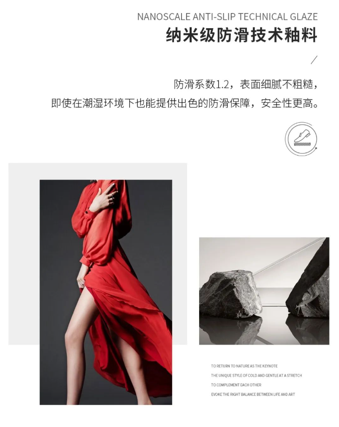 该产品不仅拥有复刻真石的细腻肌理,还兼具1.2防滑系数、1500转耐磨度等优越性能,达到干湿双防滑的效果,为消费者提供全场景防滑的空间解决方案。
