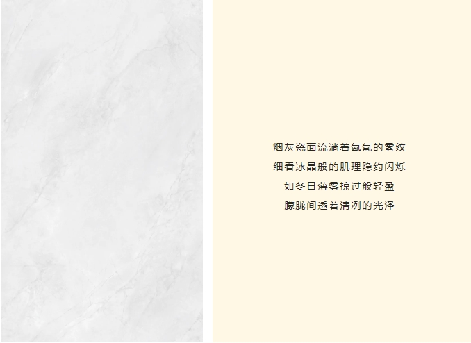 打破传统铺贴的视觉桎梏,打造出800x1350MM创新规格,无论是酒店、商场等公共空间应用,还是私宅的个性彰显,5片即可延伸10㎡的连贯视觉,让设计创意挣脱尺寸枷锁。