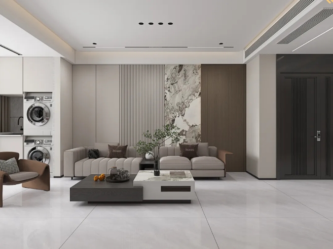 以希腊灰大面积铺贴空间,其设计感恰似天然水墨铺展,光影交织间,延伸空间质感,演绎出优雅的生活格调。